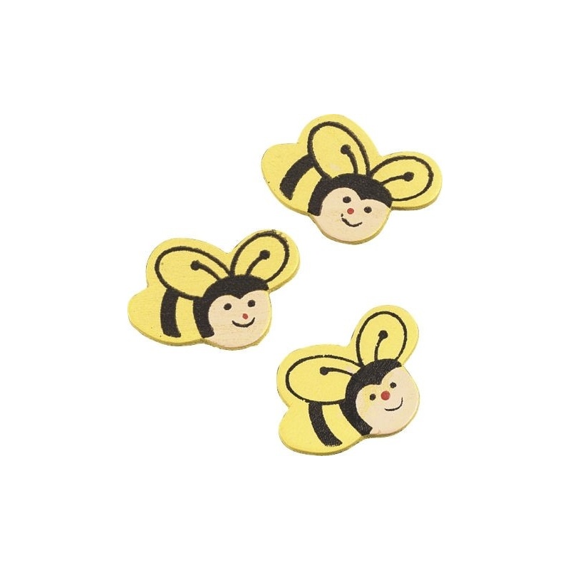 matériaux décoratifs pour usage variés· 2,7 cm· 15 pièces· Abeille· bois· jaune, noir· sous sachet avec perforation euro