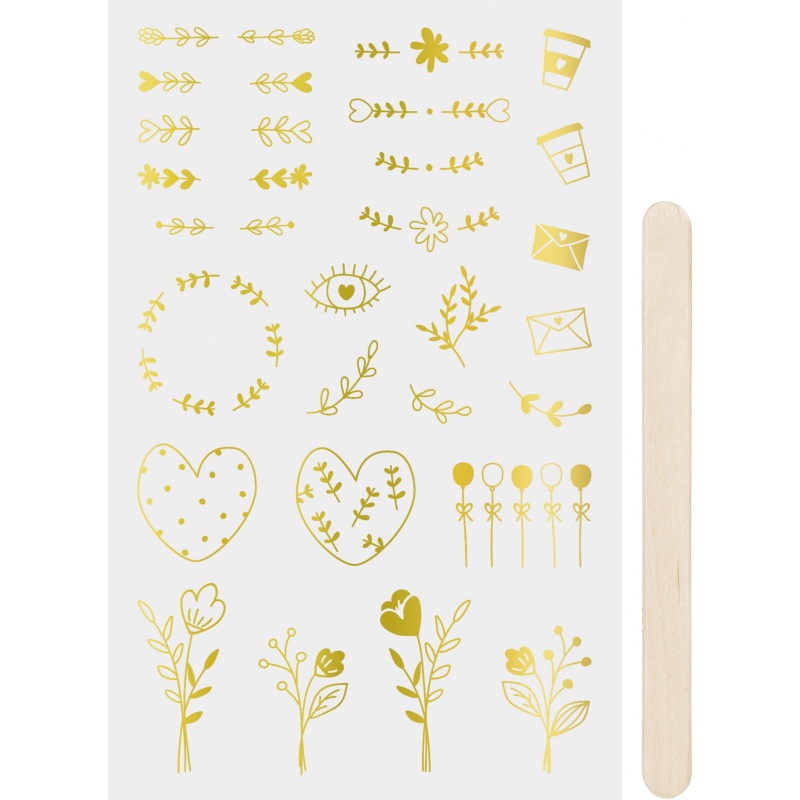 · 1 planche de motifs, 1 bâtonnet en bois