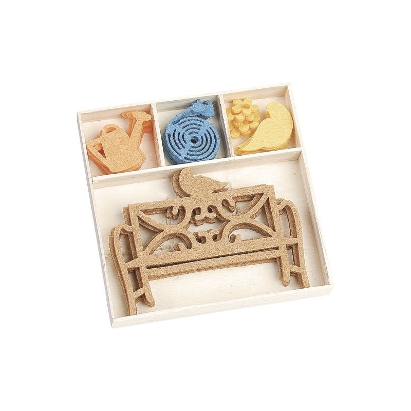 2,2 cm· 20 pièces· Banc de jardin· feutrine· motif env. 3 - 9 cm· Emballage sous film dans une boîte en bois