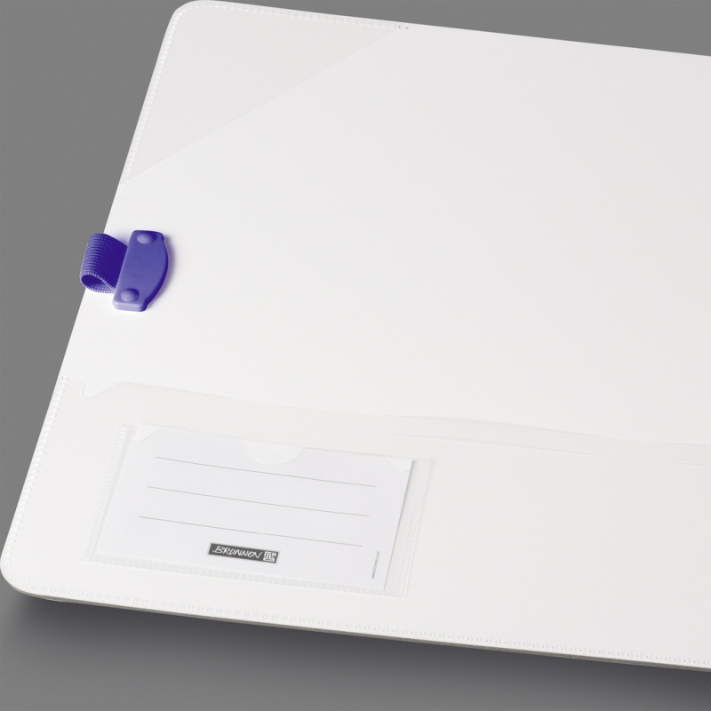 · passant pour stylo, fermeture à élastique, pochette de rangement sur 2ème de couverture, dos plat avec étiquette pour inscriptions