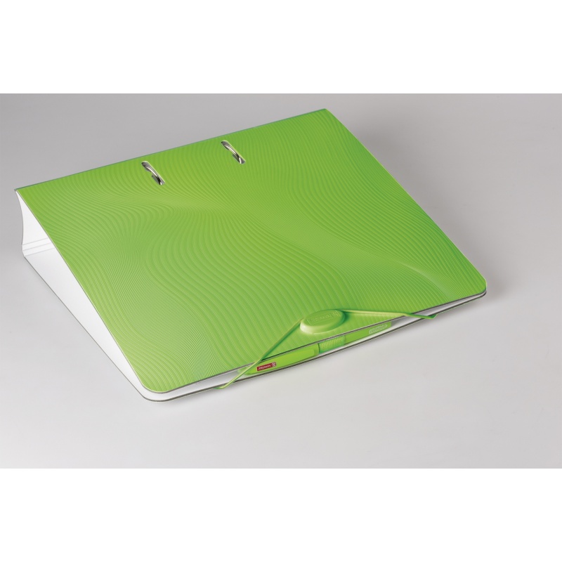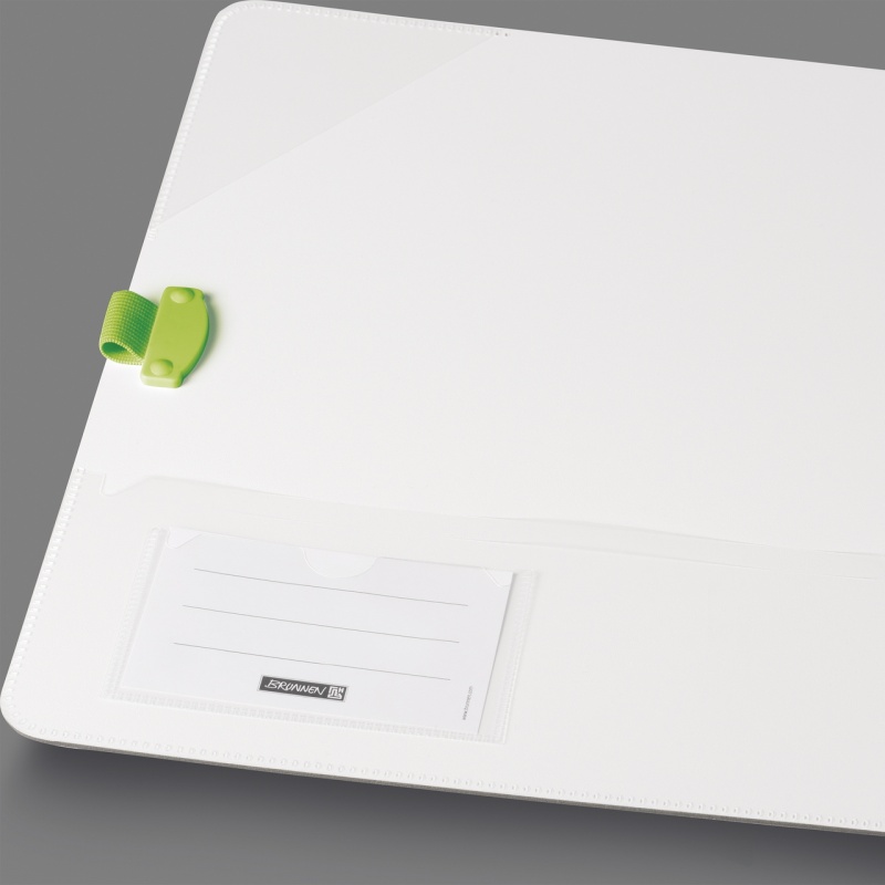 · passant pour stylo, fermeture à élastique, pochette de rangement sur 2ème de couverture, dos plat avec étiquette pour inscriptions