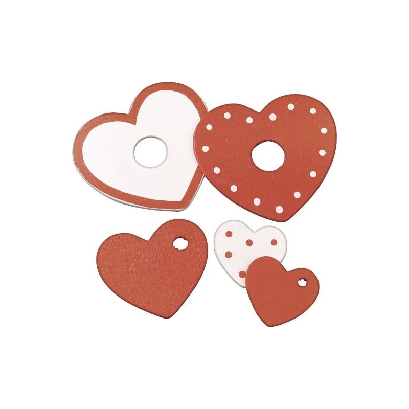 pour décorer, confectionner des cartes et bien plus encore· 2 - 4 cm· 14 pièces· bois· rouge, blanc· percé· sous sachet avec perforation euro