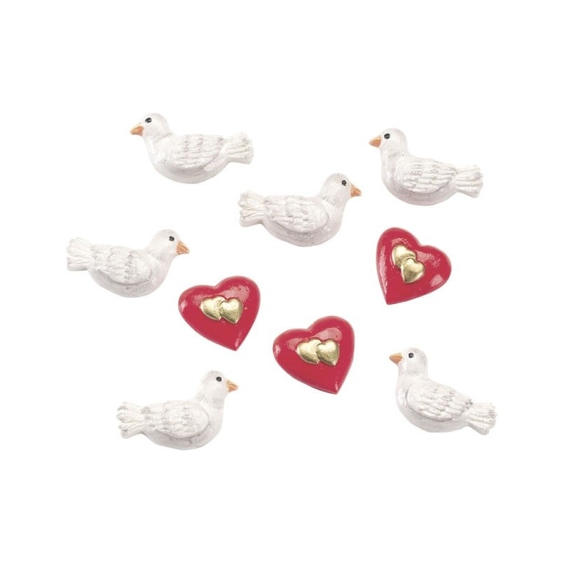 1,5 - 2 cm· 9 pièces· polyrésine· blanc, rouge· avec point de colle· sous sachet avec perforation euro