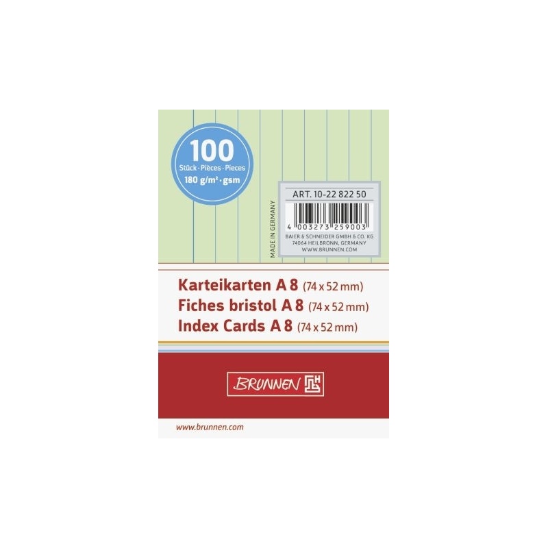 A8· 100 pièces· vert· lignées, interlignes 7 mm, ligne en-tête bleue, lignes horizontales bleues