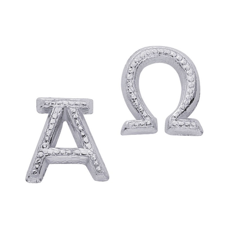 15 x 15 mm· Alfa et Omega· argenté· se fixe par légère pression sur bougies, verre, porcelaine etc.· sous sachet avec perforation euro