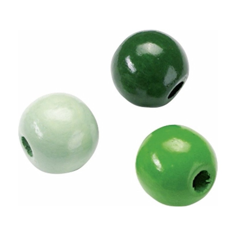 Perle bois 10mm vert mél.50pc