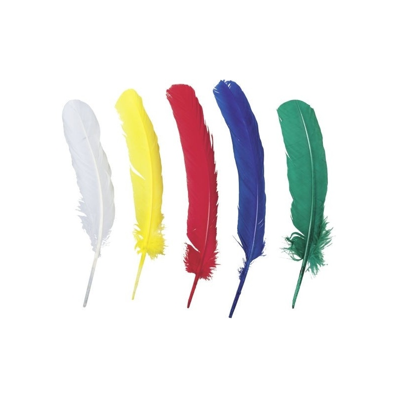 17 - 19 cm· 50 pièces· blanc, jaune, rouge, bleu, vert· pas d'animaux plumés vivants!· plumes d'oie· sous sachet