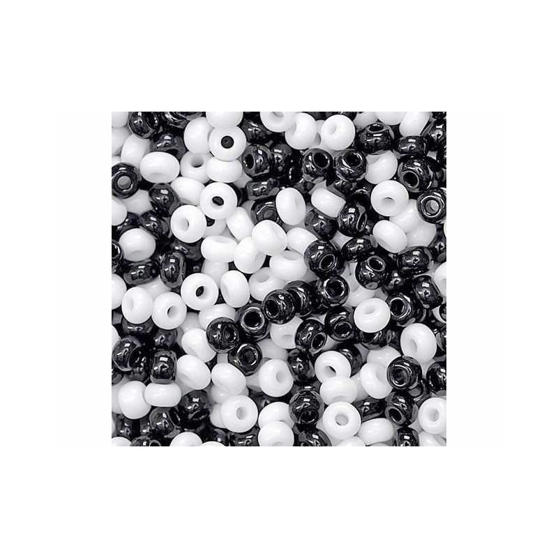 à utiliser pour diverses techniques d'enfilage et de broderie· Ø 2,5 mm· 17 g· verre· mélange noir-blanc· opaque· en boîte