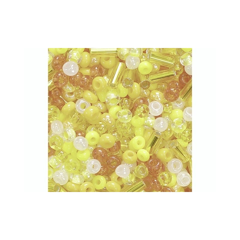 à utiliser pour diverses techniques d'enfilage et de broderie· Ø 2,5 mm· 20 g· verre· mélange jaune-orange· sous sachet avec perforation euro