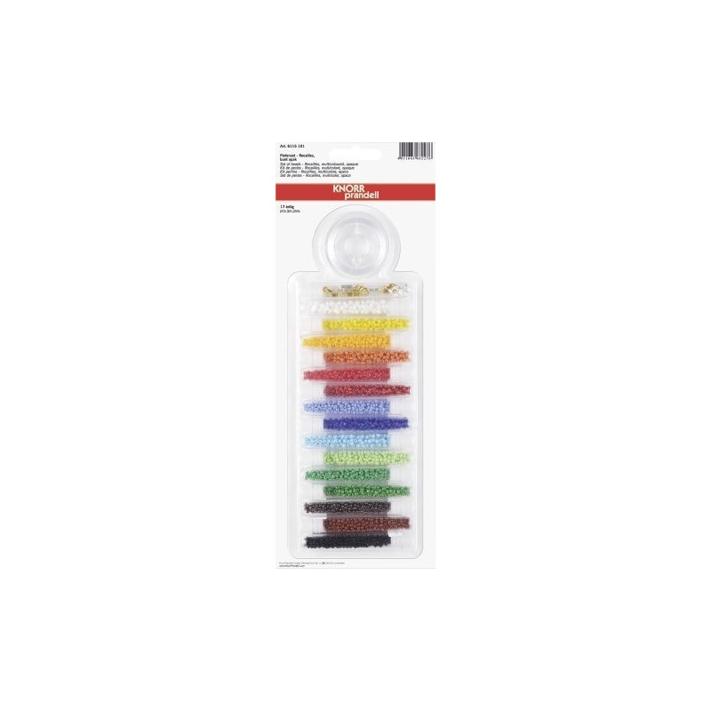 · 15 tubes de Rocailles différentes, 25 m de fil perlon 0,35 mm, 3 fermoirs à mousqueton et 3 fermoirs à vis en doré et argenté