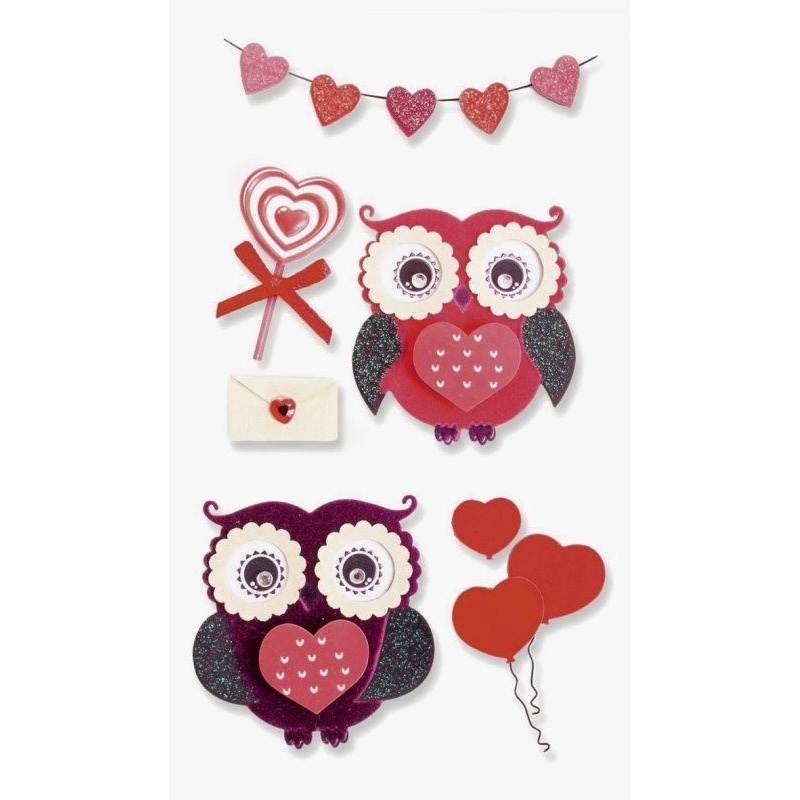 7,5 x 16,5 cm· Chouette en coeur· stickers cartonnés avec détails décoratifs tels que perles, petits rubans, pierres acryliques etc.