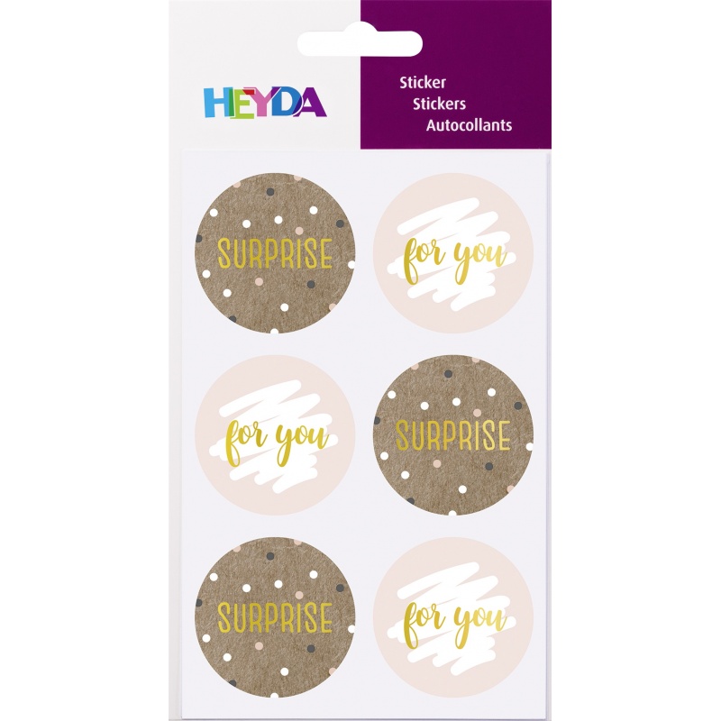 · stickers papier, en partie avec effets ultra-brillant ou fluo
